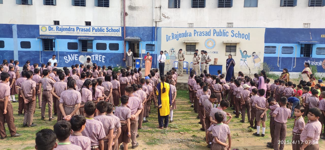 डॉ. राजेंद्र प्रसाद पब्लिक स्कूल, रानी पोखर के प्रांगण में आज एक विशेष जागरूकता कार्यक्रम का आयोजन किया गया। रेलवे सुरक्षा बल (RPF) के अधिकारियों ने विद्यालय की प्रातःकालीन प्रार्थना सभा में शामिल होकर छात्रों को रेल सुरक्षा, यात्रा के दौरान सतर्कता, और चाइल्ड ट्रैफिकिंग जैसे गंभीर विषयों पर जानकारी दी।
