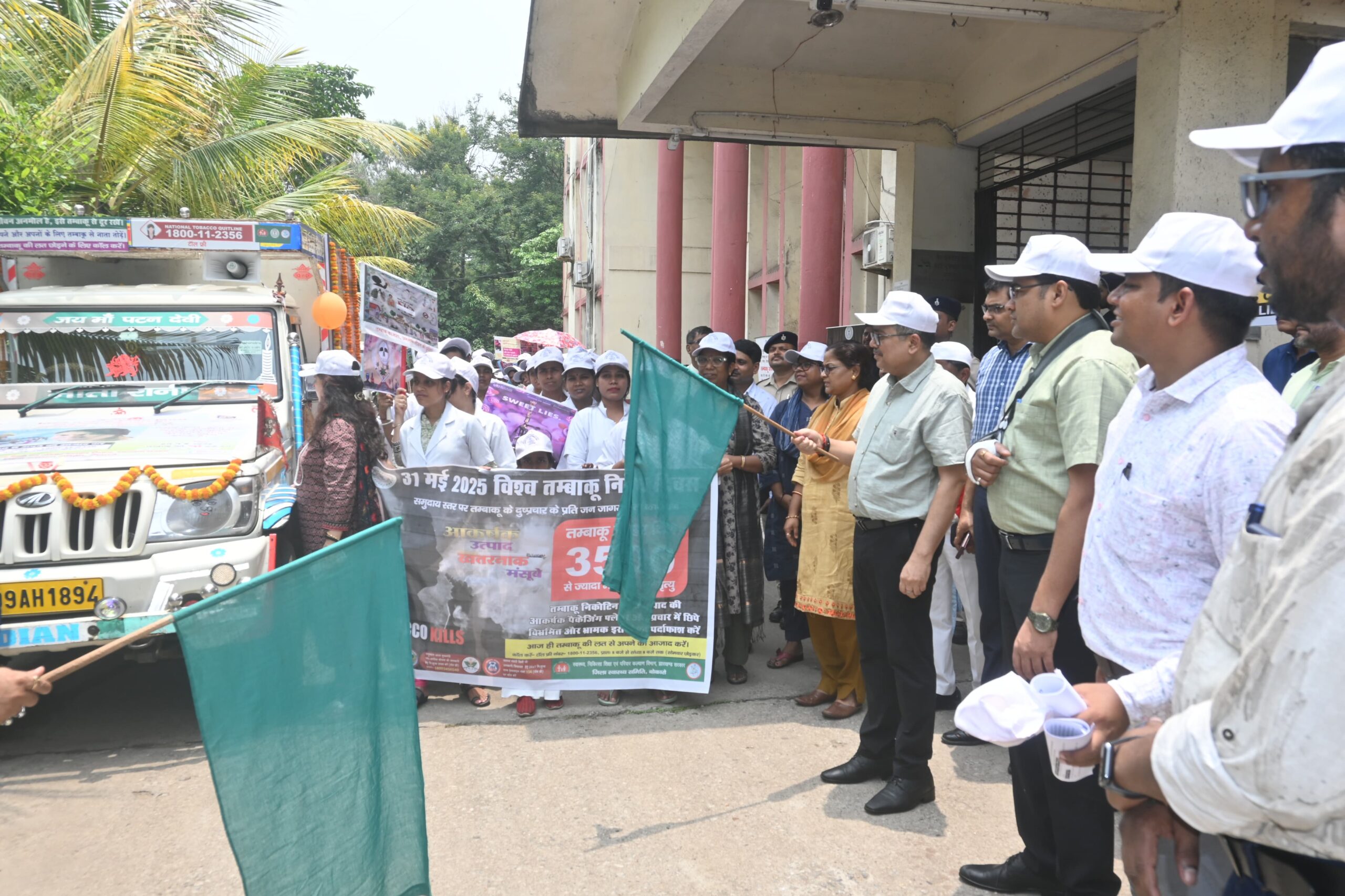 बोकारो: विश्व तंबाकू निषेध दिवस 2025 के अवसर पर उपायुक्त श्री अजय नाथ झा ने समाहरणालय परिसर से तंबाकू सेवन के दुष्प्रभावों को लेकर जनजागरूकता हेतु रैली एवं रथ को हरी झंडी दिखाकर रवाना किया। यह जागरूकता रथ जिले के सभी नौ प्रखंडों के पंचायतों में घूमकर आम जनता को तंबाकू के स्वास्थ्य पर पड़ने वाले घातक प्रभावों के बारे में जागरूक करेगा।