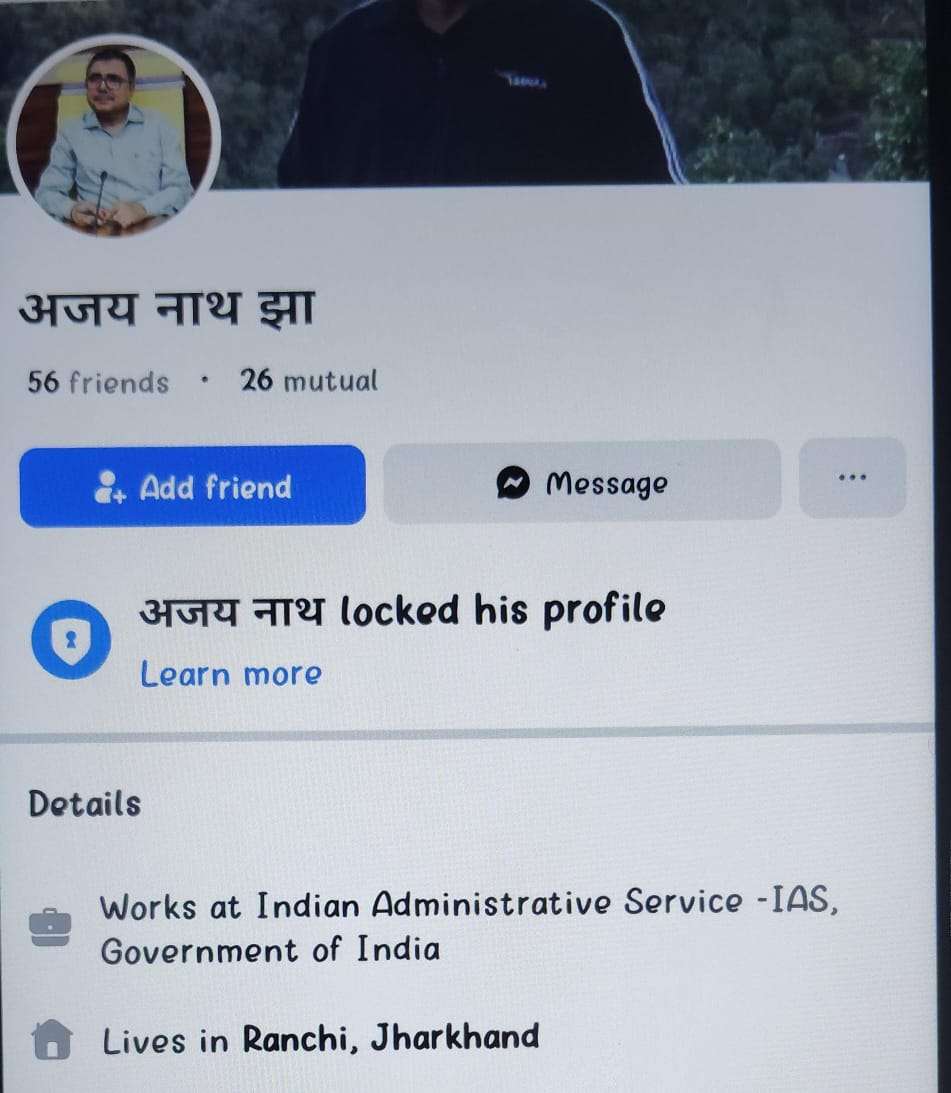 बोकारो उपायुक्त का फर्जी फेसबुक अकाउंट, आमजन रहें सतर्क